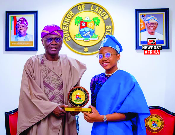 LAGOS, NIGERIA — Governor Babajide Sanwo-Olu on Monday hosted Miss Esther Etiyemonu, the newly crowned One-Day Governor of Lagos State and overall winner of the 21st Lagos State Spelling Bee Competition, at Lagos House, Marina.