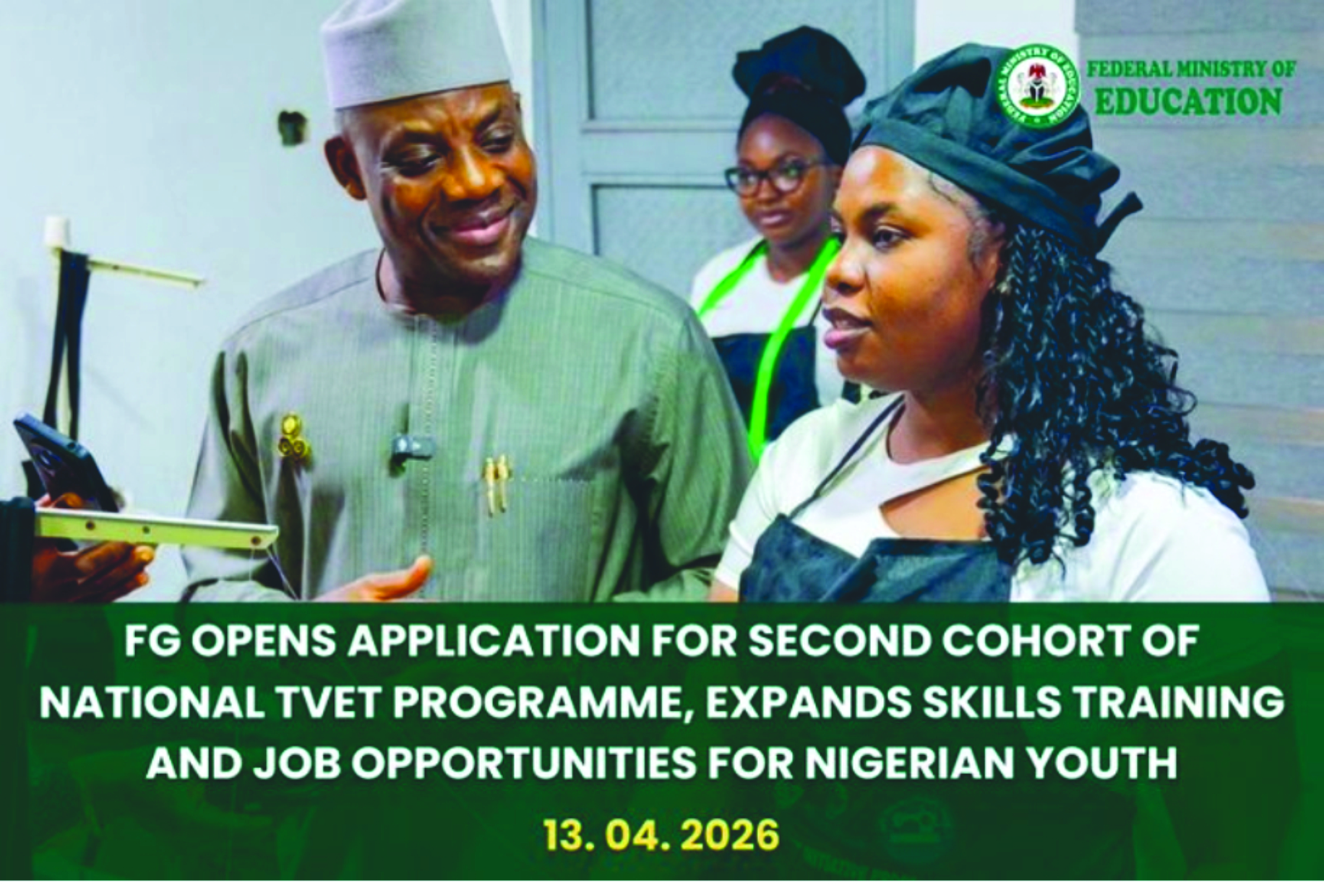 ABUJA, Nigeria, 13 April 2026 (NPA) — The Federal Ministry of Education has announced the opening of applications for the second cohort of the National Technical and Vocational Education and Training (TVET) Programme, a flagship initiative under President Bola Ahmed Tinubu’s Renewed Hope Agenda.