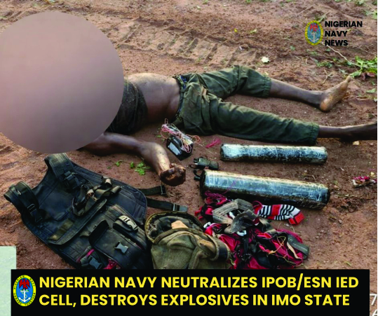IMO, NIGERIA, 29 March 2026 (NPA) — Troops of the Nigerian Navy from the Naval Base Oguta Tactical Patrol have recorded a breakthrough, neutralising an alleged IPOB/ESN improvised explosive device (IED) cell and destroying explosives during a clearance operation in Imo State.
