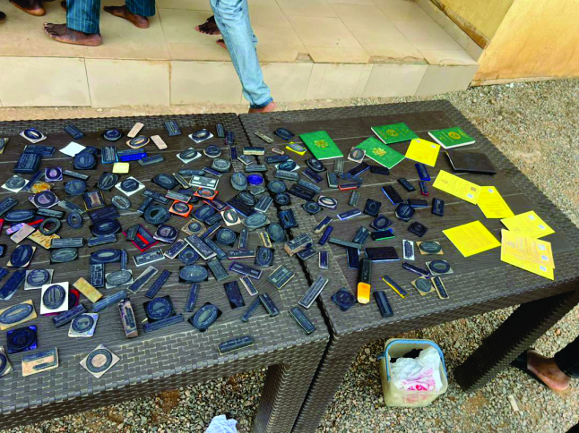 Search warrants executed at their operational bases led to the recovery of incriminating exhibits, including forged police character certificates, Nigeria Police Force CID stamps, Oyo State Government ministry stamps, and stamps belonging to commercial banks and private organisations.